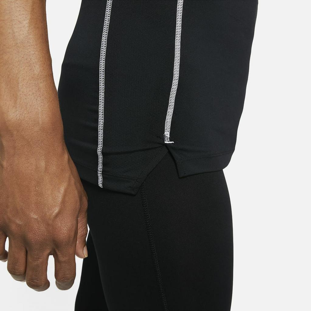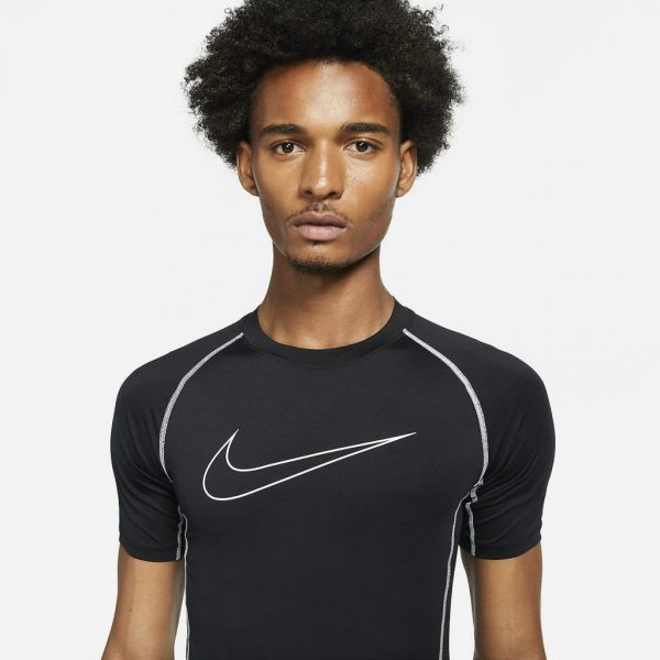 Nike Pro Dri-FIT-overdelen omslutter dig i letvægtsmateriale med åndbarhed, der er indbygget i varmezonerne, så du kan holde dig kølig og tør fra opvarmning til nedkøling. Elastisk materiale, der er fremstillet med mindst 75% genanvendte polyesterfibre, har en tætsiddende pasform, der gør det nemt at have på som lag under andre overdele.