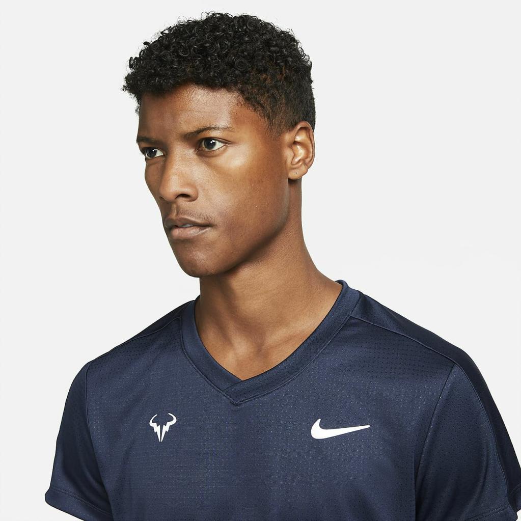 Rafa Challenger-overdelen er svedtransporterende og åndbar med opdaterede ærmer, så du kan holde dig kølig og bevæge dig frit under dine hårdeste kampe.Materialet har et unikt, tekstureret design, der minder om Rafas banelook.Dette produkt er fremstillet af 100% genanvendte polyesterfibre.