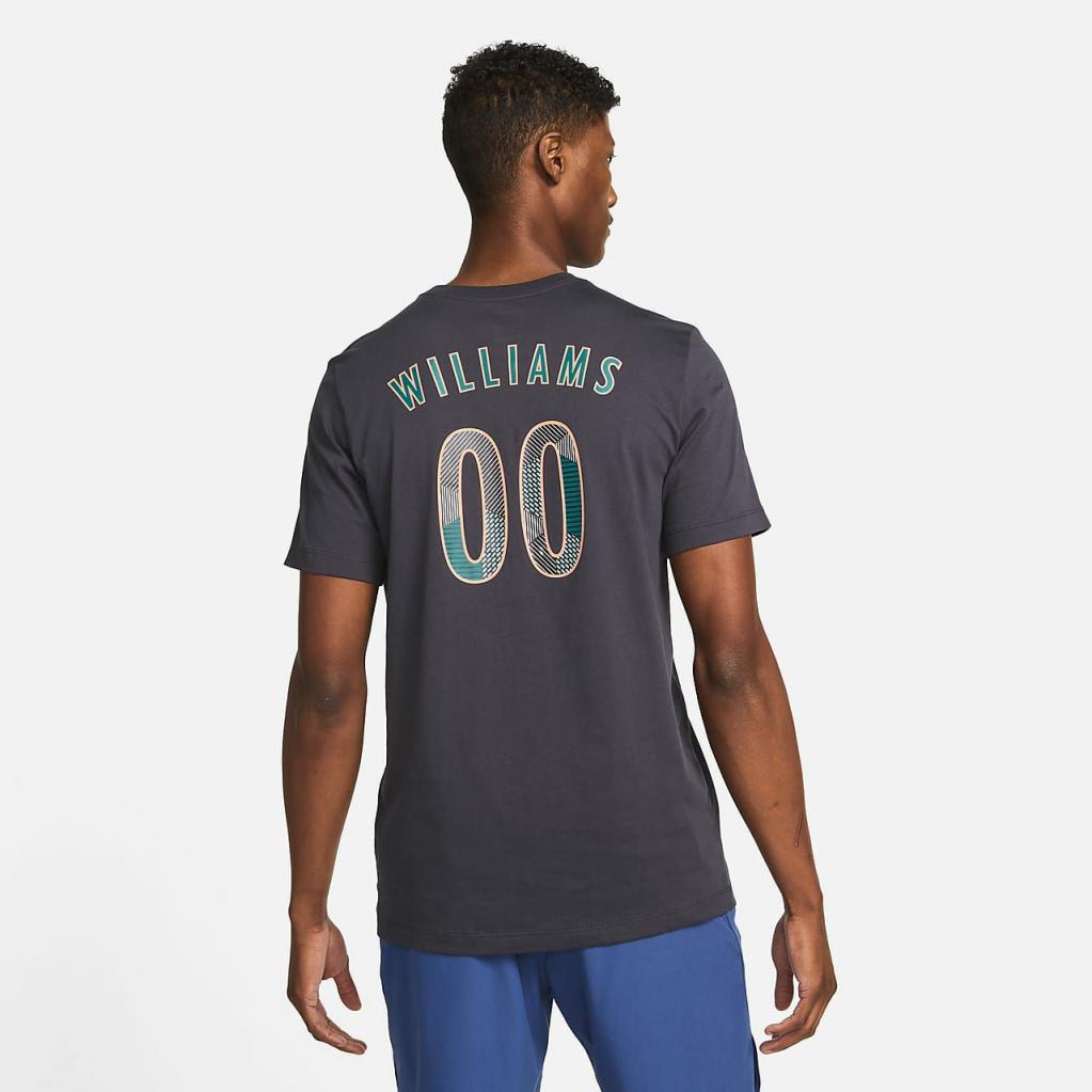Hvert bogstav på Serena Design Crew-T-shirten fremhæver elementerne fra kollektionens Kente-stofmønster.Det broderede "Williams 00" på tværs af ryggen er en hyldest til Serenas datter, hvis initialer er "OO", og også en hyldest til tallet nul, også kendt som "Love" i tennis.