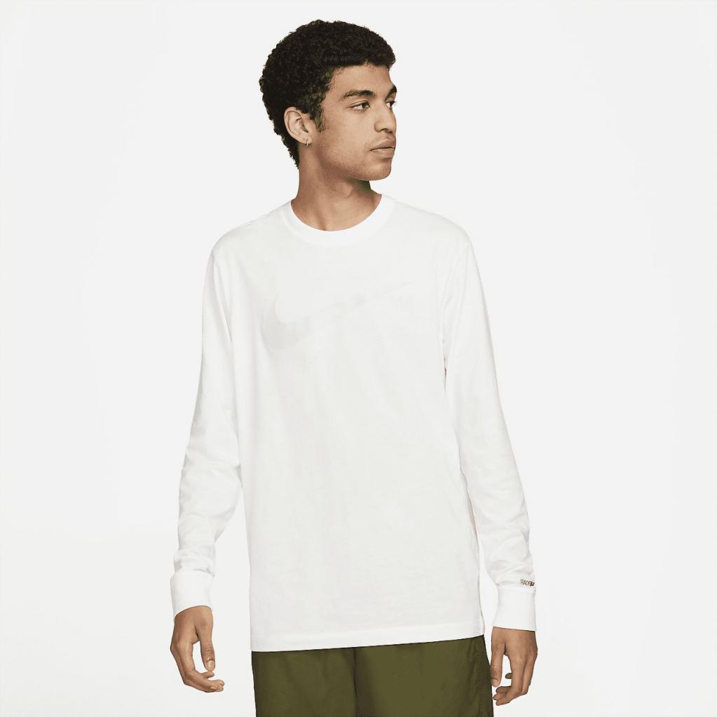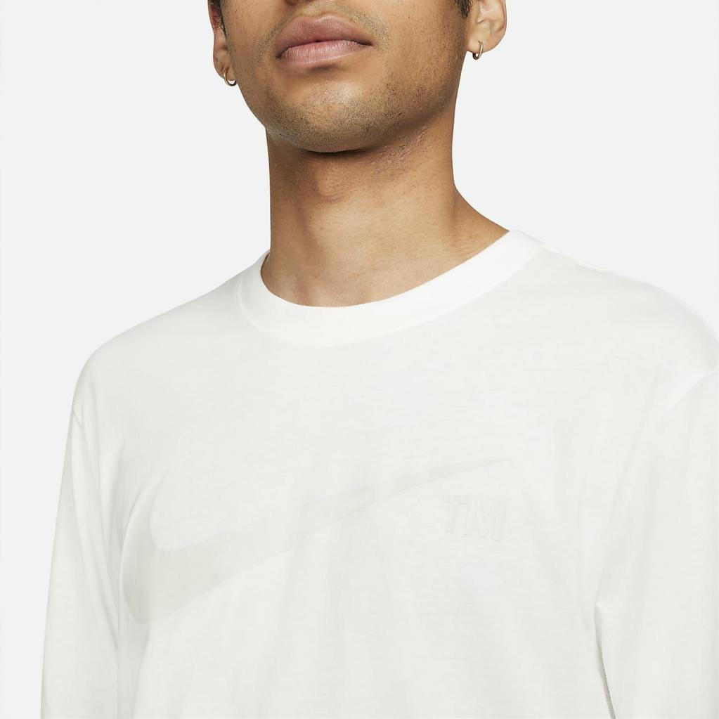 En kombination af print og broderet grafik sætter Swooshen i fokus på den langærmede Nike Sportswear-T-shirt.Denne behagelige stil har en klassisk pasform og en bomuldskonstruktion til hverdagsbrug.