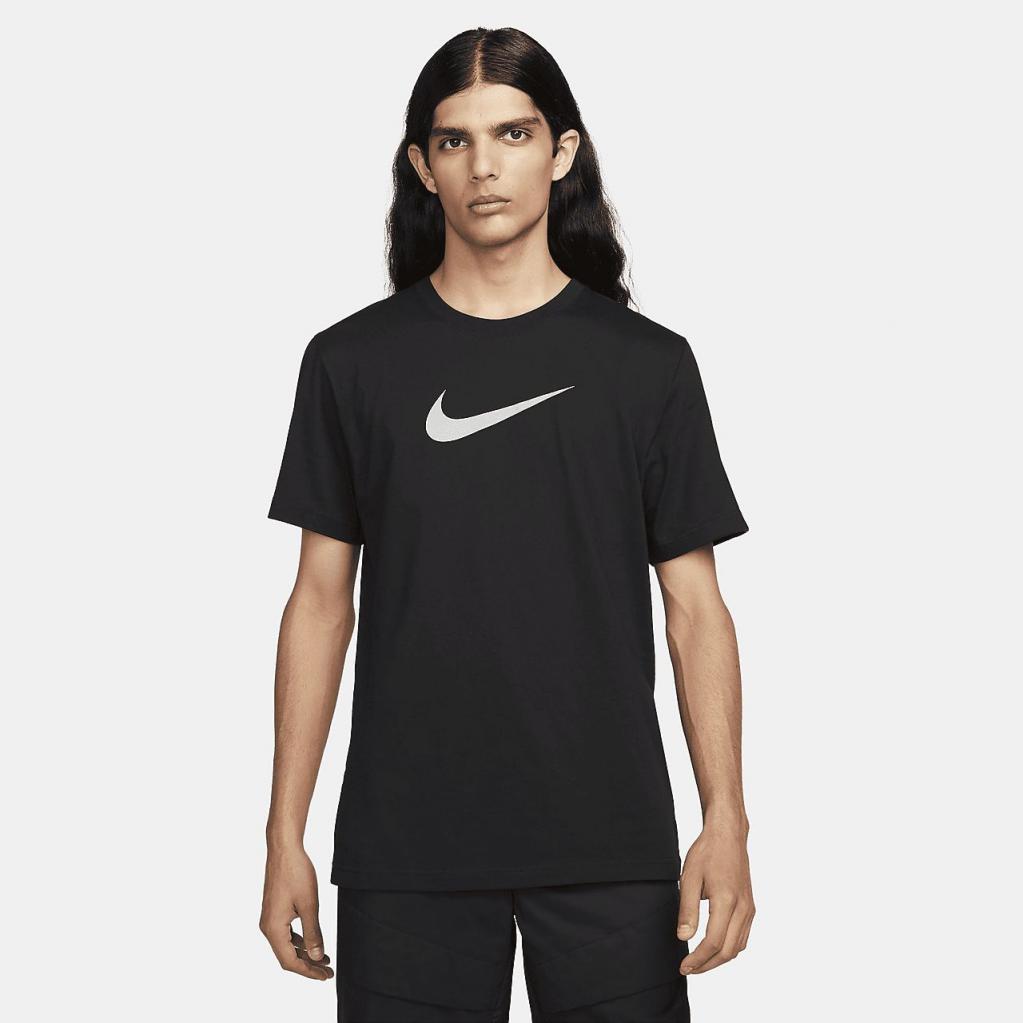 Den klassiske bomulds-T-shirt får en elegant opdatering.Nike-branding løber ned langs hver skulder og gør denne T-shirt nem at kombinere med joggingbukser eller basketballshorts for et afslappet look.Dette produkt er fremstillet med mindst 75% økologiske bomuldsfibre.