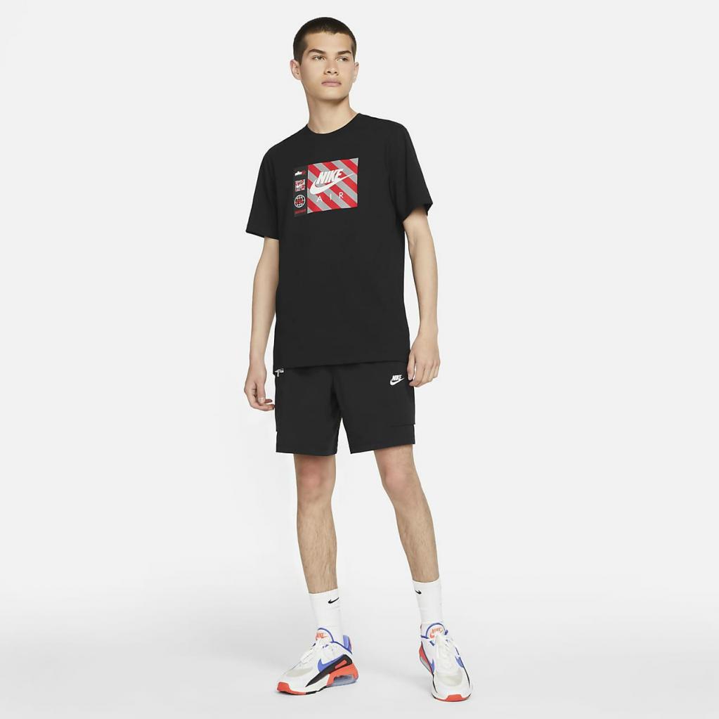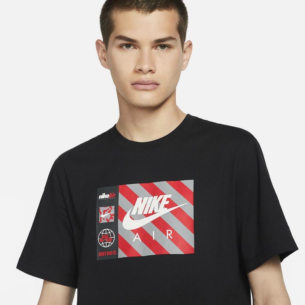 Løft dit look med Nike Sportswear-T-shirten.Dens bløde hverdagsbomuldskonstruktion repræsenterer Nike Air med advarselsstriber og klassiske Nike-logoer.Dens klassiske pasform giver en velkendt fornemmelse, der er perfekt til hverdagsbrug.