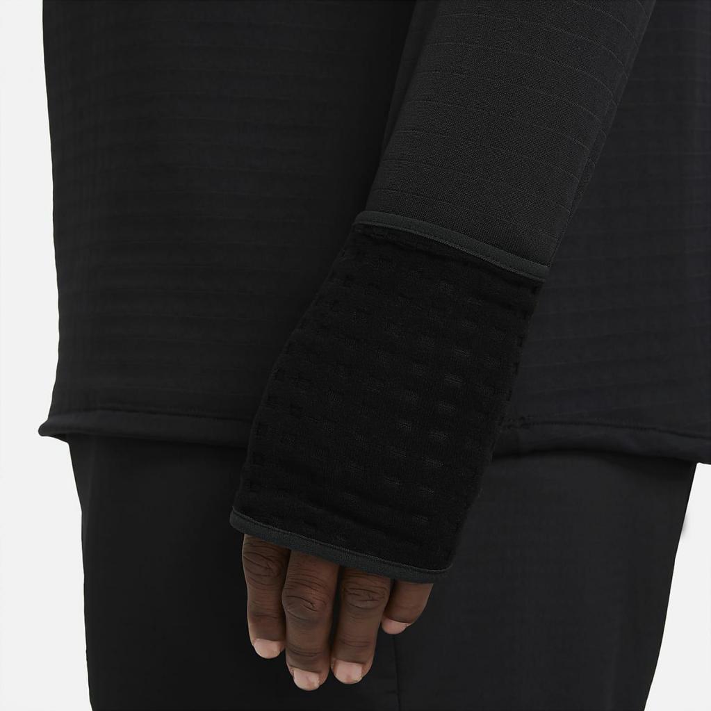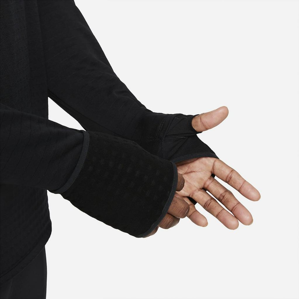 Løbeturen stopper ikke, når regnen begynder. Med Nike Therma-FIT Repel Element-overdelen har du et blødt, varmt materiale, der er fremstillet med mindst 75% genanvendte polyesterfibre og med vandafvisende egenskaber, der hjælper med at holde dig veltilpas i vådt vejr. Et design med 1/4 lynlås giver dig mulighed for at styre luftcirkulationen, mens et 3-vejs vantesystem giver dig mulighed for ekstra dækning. Dens lette og alsidige design lader dig bære den som et mellemlag eller som det eneste lag.