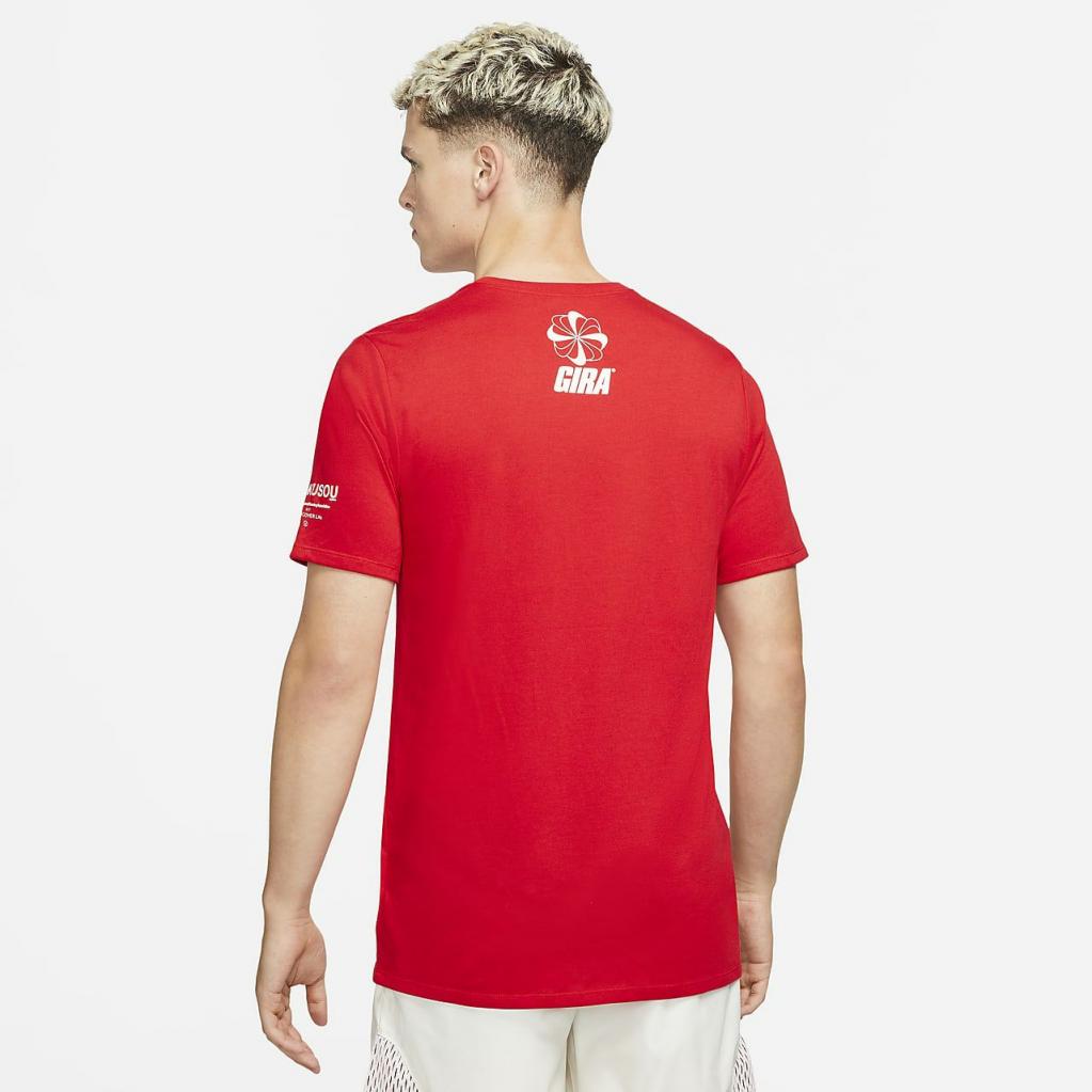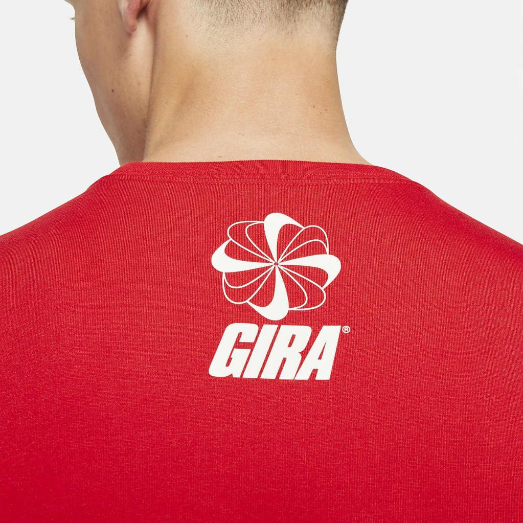 Den klassiske Swoosh Sunburst fra 1972 ses på ryggen.Denne version repræsenterer Jun Takahashis løbehold med ordene GIRA skrevet nedenunder.