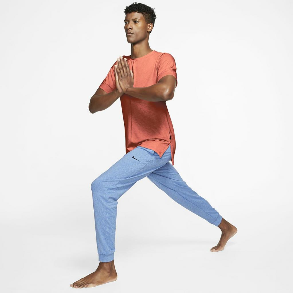Nike Yoga Dri-FIT-overdelen føles blød og let for komfort, der varer længe efter yogatimen.Du kan bevæge dig frit fra første til sidste position med masser af stretch og slidskanter.Dette produkt er fremstillet med mindst 50% genanvendte polyesterfibre.