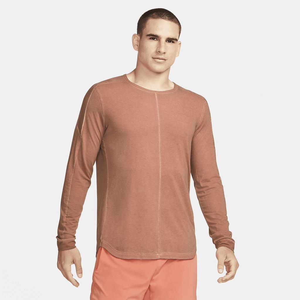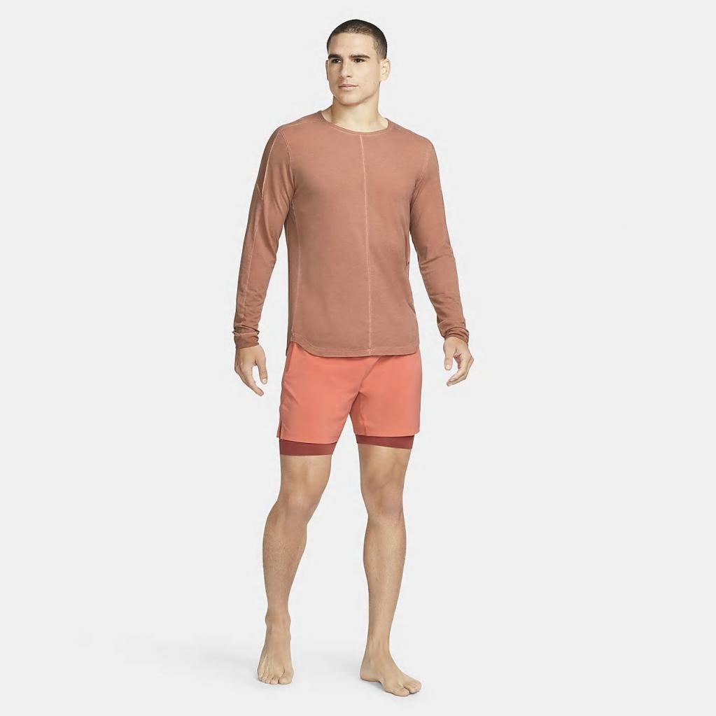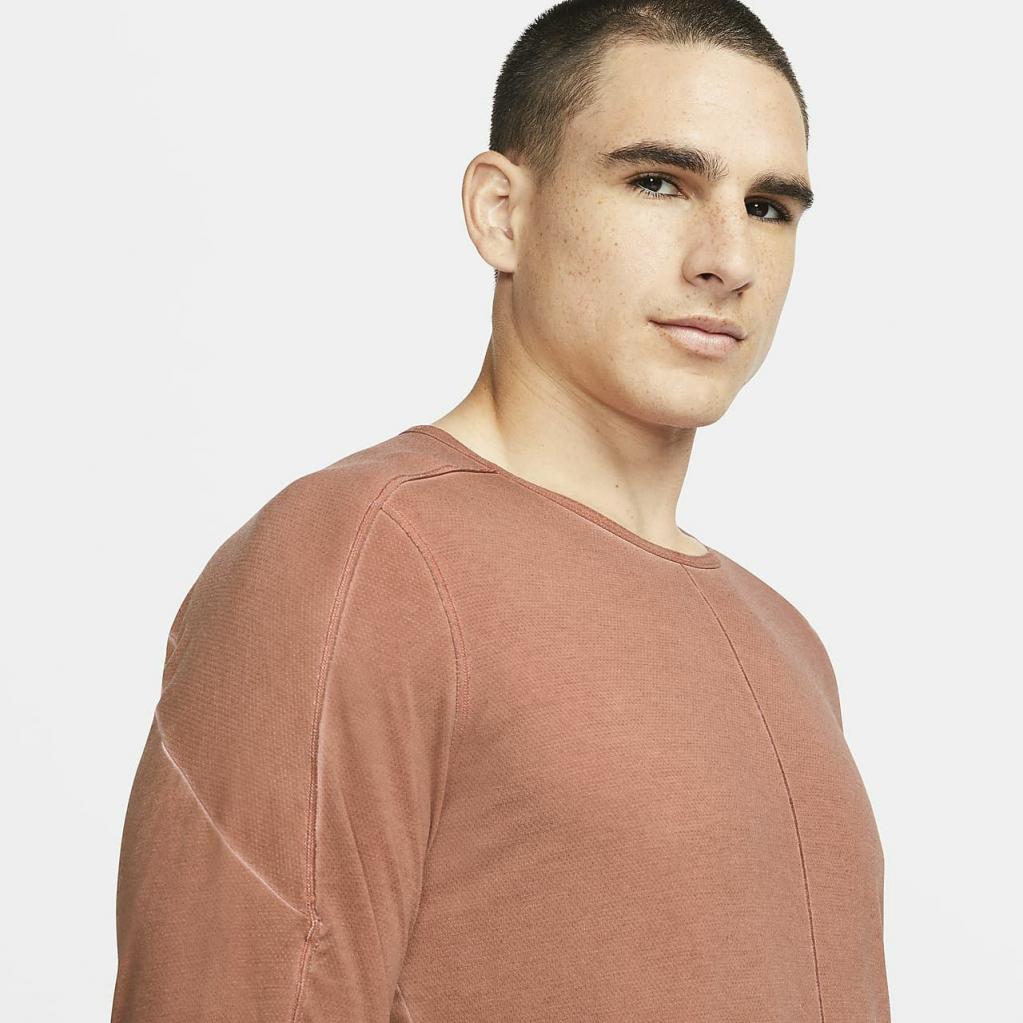 Find komfort i Nike Yoga-overdelen. Let, elastisk materiale er fremstillet med mindst 50% genanvendte polyesterfibre, der holder dig afkølet fra den ene stilling til den næste.