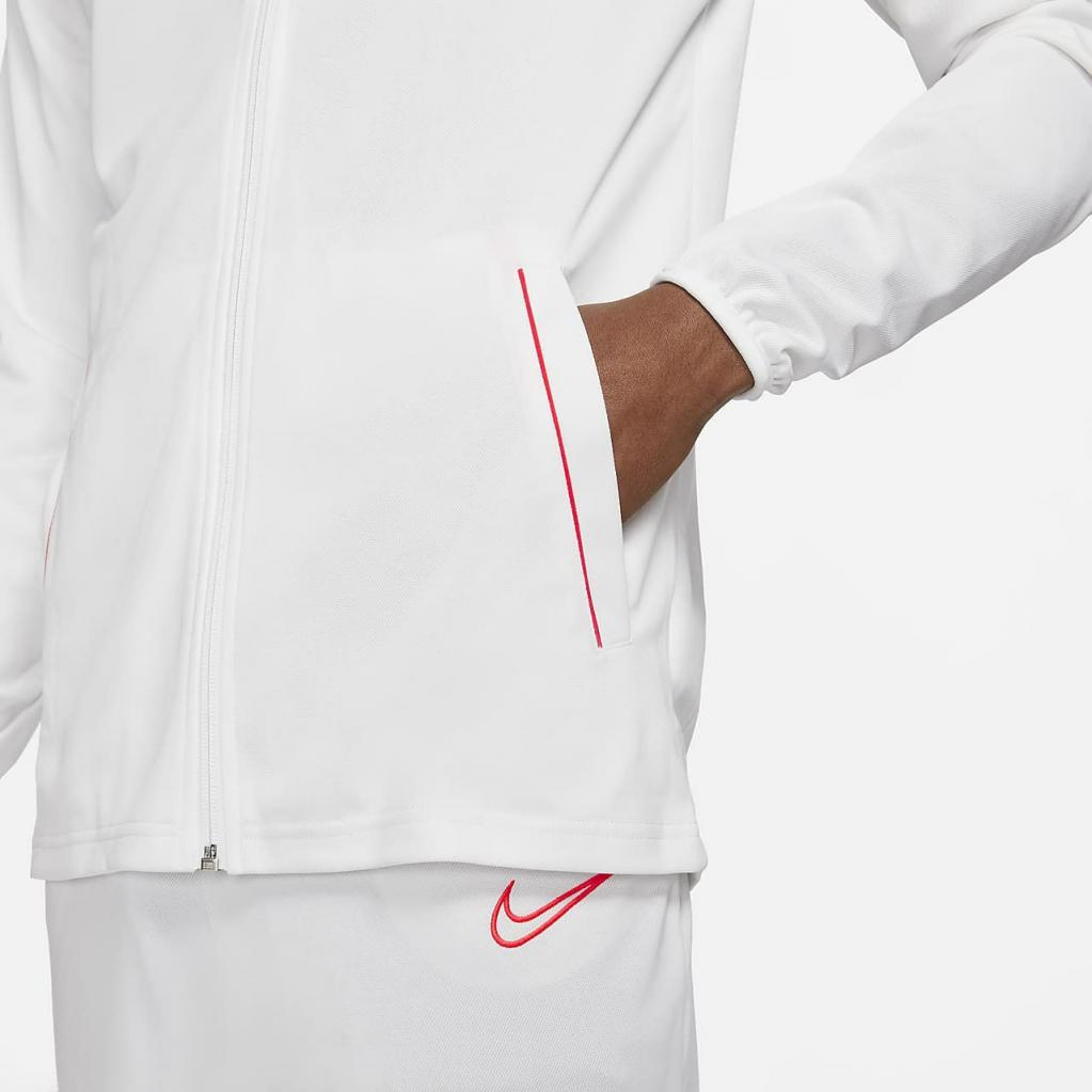 Nike Dri-FIT Academy-træningsdragten består af en jakke med lynlås og justerbare bukser, så du kan træne i total komfort.Svedtransporterende materiale og meshdetaljer hjælper med at holde dig tør og afkølet, når du træner eller bevæger dig til og fra kampe.Dette produkt er fremstillet af 100% genanvendte polyesterfibre.