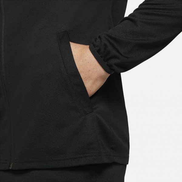 Nike Dri-FIT Academy-træningsdragten består af en jakke med lynlås og justerbare bukser, så du kan træne i total komfort.Svedtransporterende materiale og meshdetaljer hjælper med at holde dig tør og afkølet, når du træner eller bevæger dig til og fra kampe.Dette produkt er fremstillet af 100% genanvendte polyesterfibre.